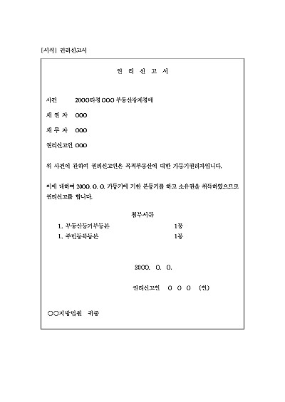 주요내용 : 경매절차에서 부동산 위의 권리자가 자신의 권리를 법원에 알리고, 이를 통해 경매절차에서 이해관계인으로 인정받아 매각대금을 배당받기 위한 목적으로 사용되어지는 신고서 양식임. 단 무단전재 방지목적으로 PDF 파일로 올리니, 구매하신 후 혹 원본 파일이 필요하신 분들은 톡이나 문자, 메일, 전화 등을 주시면 작성방법 등에 대한 간단한 무료상담과 함께 원본 파일을 보내드리도록 하겠습니다.