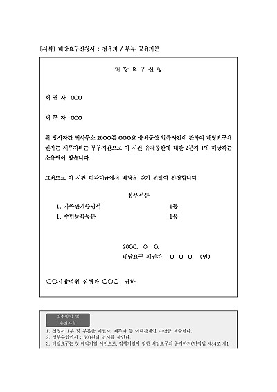 배당요구신청서 : 점유자 요약정보 및 구매