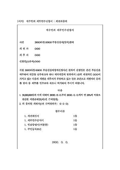 매수인의 채무인수신청서 : 채권자동의 요약정보 및 구매