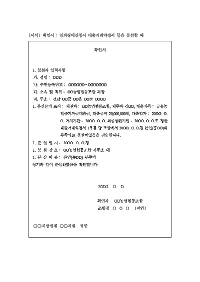 주요내용 : 등기필증/대출거래약정 등을 분실했을 때는 임의경매신청 시 확인서면, 확인조서, 공증 등의 방법으로 대체할 수 있는 이때 사용되어지는 확인서 양식임. 단 무단전재 방지목적으로 PDF 파일로 올리니, 구매하신 후 혹 원본 파일이 필요하신 분들은 톡이나 문자, 메일, 전화 등을 주시면 작성방법 등에 대한 간단한 무료상담과 함께 원본 파일을 보내드리도록 하겠습니다.