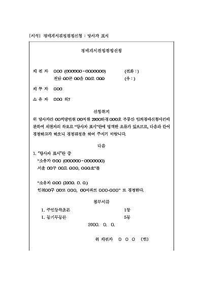 경매개시결정경정신청 : 당사자 표시 요약정보 및 구매