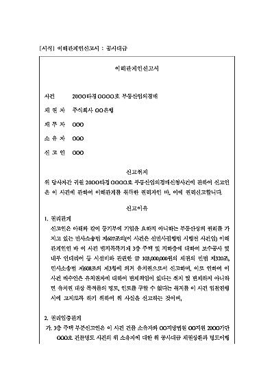 이해관계인신고서 : 공사대금 요약정보 및 구매