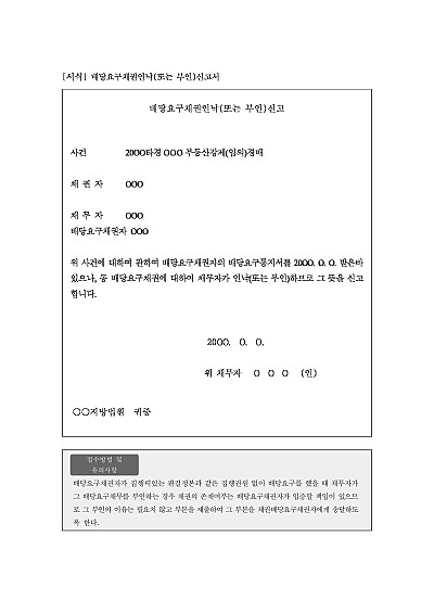 주요내용 : 경매절차에서 배당을 받을 권리가 있는 채권자들과 그 채권액을 명확히 하고, 허위 또는 부실한 채권을 가려내어 정당한 배당을 보장할 목적으로 사용되어지는 신고서 양식임. 단 무단전재 방지목적으로 PDF 파일로 올리니, 구매하신 후 혹 원본 파일이 필요하신 분들은 톡이나 문자, 메일, 전화 등을 주시면 작성방법 등에 대한 간단한 무료상담과 함께 원본 파일을 보내드리도록 하겠습니다.