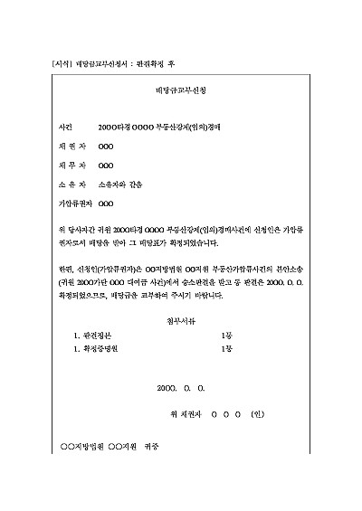 배당금교부신청서 : 판결확정 후 요약정보 및 구매