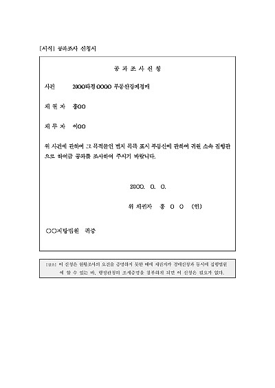 주요내용 : 이 신청은 현황조사의 요건을 증명하지 못한 때에 채권자가 경매신청과 동시에  집행법원에 할 수 있고, 만일 행정관청이 조세증명을 첨부하게 되면 이 신청은 필요 없는 양식임. 단 무단전재 방지목적으로 PDF 파일로 올리니구매하신 후 혹 원본 파일이 필요하신 분들은 톡이나 문자메일전화 등을 주시면 작성방법 등에 대한 간단한 무료상담과 함께 원본 파일을 보내드리도록 하겠습니다.