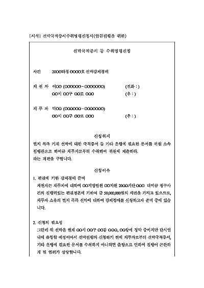 선박국적증서수취명령신청서 : 압류집행을 위한 요약정보 및 구매