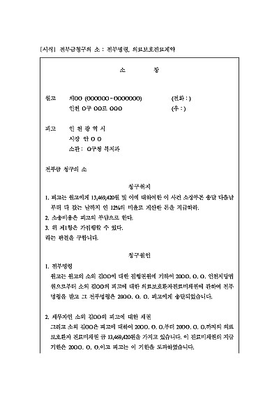 주요내용 : 전부명령, 채무자의 피고에 대한 채권존재시 당해 채권에 대한 전부명령 집행을 위한 목적으로 사용되어지는 소장 양식임. 단 무단전재 방지목적으로 PDF 파일로 올리니, 구매하신 후 혹 원본 파일이 필요하신 분들은 톡이나 문자, 메일, 전화 등을 주시면 작성방법 등에 대한 간단한 무료상담과 함께 원본 파일을 보내드리도록 하겠습니다.