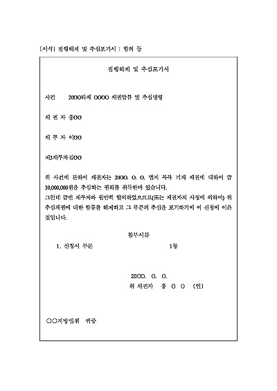주요내용 : 추심권리 취득, 원만한 합의, 당해 추심채권에 대한 압류를 해제하고 추심을 포기하기 위한 목적으로 사용되어지는 신청서 양식임. 단 무단전재 방지목적으로 PDF 파일로 올리니, 구매하신 후 혹 원본 파일이 필요하신 분들은 톡이나 문자, 메일, 전화 등을 주시면 작성방법 등에 대한 간단한 무료상담과 함께 원본 파일을 보내드리도록 하겠습니다.