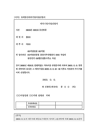 주요내용 : 압류된 유체동산의 매각 기일을 지정해달라고 요청하는 목적으로 사용되어지는 신청서 양식임. 단 무단전재 방지목적으로 PDF 파일로 올리니,구매하신 후 혹 원본 파일이 필요하신 분들은 톡이나 문자, 메일, 전화 등을 주시면 작성방법 등에 대한 간단한 무료상담과 함께 원본 파일을 보내드리도록 하겠습니다.