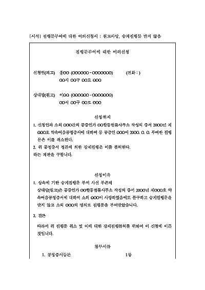주요내용 : 원고 사망, 상속인이 아닌 망자 명의로 집행문부여. 집행문취소 및 강제집행불허신청시 사용되어지는 신청서 양식임. 단 무단전재 방지목적으로 PDF 파일로 올리니, 구매하신 후 혹 원본 파일이 필요하신 분들은 톡이나 문자, 메일, 전화 등을 주시면 작성방법 등에 대한 간단한 무료상담과 함께 원본 파일을 보내드리도록 하겠습니다.