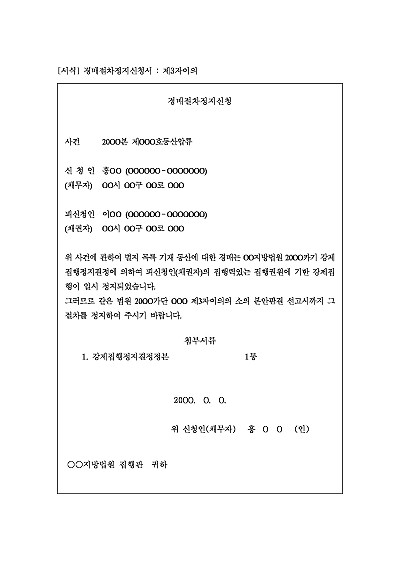 주요내용 : 강제집행정지결정, 제3자이의 소 본안판결선고시까지 그 집행절차를 정지시키기 위한 목적으로 사용되어지는 신청서 양식임. 단 무단전재 방지목적으로 PDF 파일로 올리니, 구매하신 후 혹 원본 파일이 필요하신 분들은 톡이나 문자, 메일, 전화 등을 주시면 작성방법 등에 대한 간단한 무료상담과 함께 원본 파일을 보내드리도록 하겠습니다.