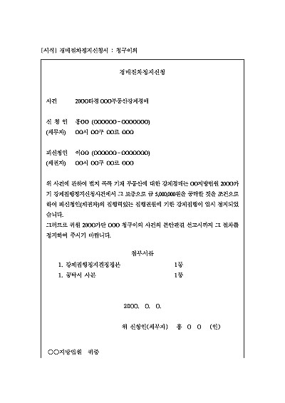 주요내용 : 강제집행정지결정, 청구이의의 소 본안판결선고시까지 그 집행절차를 정지시키기 위한 목적으로 사용되어지는 신청서 양식임. 단 무단전재 방지목적으로 PDF 파일로 올리니, 구매하신 후 혹 원본 파일이 필요하신 분들은 톡이나 문자, 메일, 전화 등을 주시면 작성방법 등에 대한 간단한 무료상담과 함께 원본 파일을 보내드리도록 하겠습니다.