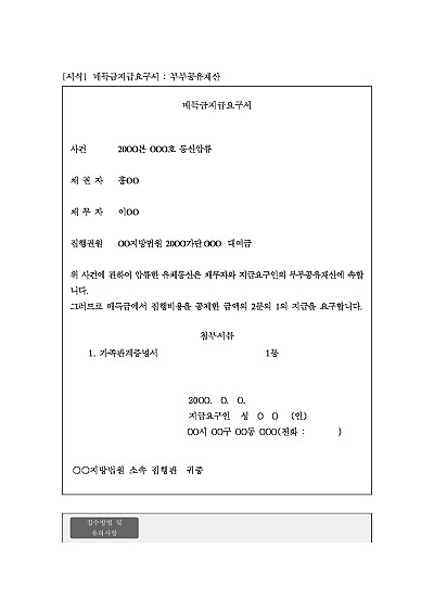 매득금지급요구서 : 부부공유재산 요약정보 및 구매