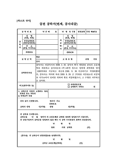 금전 공탁서(변제, 공사대금) 요약정보 및 구매