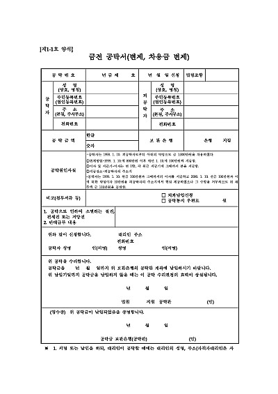 금전 공탁서(변제, 차용금 변제) 요약정보 및 구매