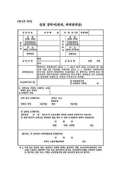 금전 공탁서(변제, 매매잔대금) 요약정보 및 구매