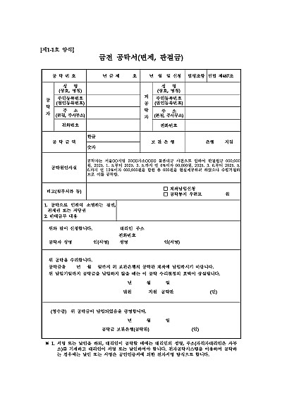 금전 공탁서(변제, 판결금) 요약정보 및 구매
