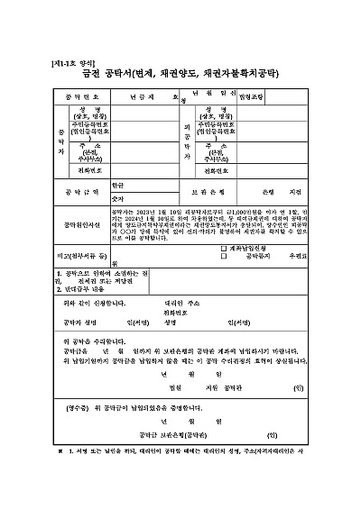 금전 공탁서(변제, 채권양도, 채권자불확치공탁) 요약정보 및 구매