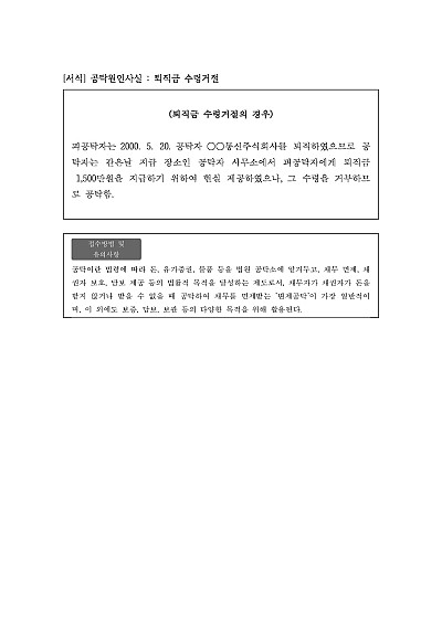 공탁원인사실 : 퇴직금 수령거절 요약정보 및 구매