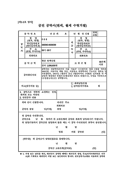 금전 공탁서(변제, 월세 수령거절) 요약정보 및 구매