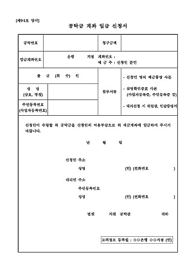 주요내용 : 공탁된 금액을 법원이나 은행을 방문하지 않고 신청인의 개인 예금계좌로 직접 입금받기 위해 공탁관에게 제출하는 서류로, 공탁번호와 청구 금액, 본인 명의 계좌번호를 기재하며, 법인이라면 사업자등록증 사본 등을 첨부하여 전자공탁 홈페이지나 공탁소에서 신청할 수 있음. 단 무단전재 방지목적으로 PDF 파일로 올리니, 구매하신 후 혹 원본 파일이 필요하신 분들은 톡이나 문자, 메일, 전화 등을 주시면 작성방법 등에 대한 간단한 무료상담과 함께 원본 파일을 보내드리도록 하겠습니다.
