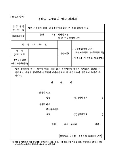 공탁금 포괄계좌 입금 신청서 요약정보 및 구매