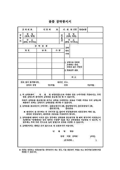주요내용 : 법령에 따라 금전, 유가증권 외의 물품(다른 종류의 물건)을 법원 공탁소에 맡기기 위해 작성하는 공식 문서로, 변제, 담보 제공 등 법률적 목적 달성을 위해 사용되며, 채무 변제 의사가 있으나 채권자가 수령을 거부하거나 불명확할 때 채무자가 채무를 면하기 위해 제출함. 단 무단전재 방지목적으로 PDF 파일로 올리니, 구매하신 후 혹 원본 파일이 필요하신 분들은 톡이나 문자, 메일, 전화 등을 주시면 작성방법 등에 대한 간단한 무료상담과 함께 원본 파일을 보내드리도록 하겠습니다.