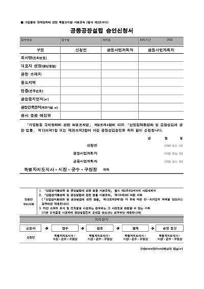 주요내용 : 건축면적 500㎡ 이상 공장이나 제조시설을 설치해 제조업을 하려는 경우, 관할 지자체(시장·군수·구청장)에 제출하여 공장 설립 및 제조시설 설치에 대한 허가를 받기 위한 서류 양식임. 단 무단전재 방지목적으로 PDF 파일로 올리니, 구매하신 후 혹 원본 파일이 필요하신 분들은 톡이나 문자, 메일, 전화 등을 주시면 작성방법 등에 대한 간단한 무료상담과 함께 원본 파일을 보내드리도록 하겠습니다.