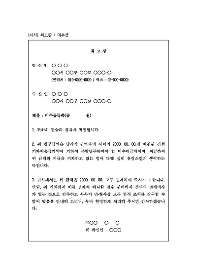 최고장 : 미수금 요약정보 및 구매