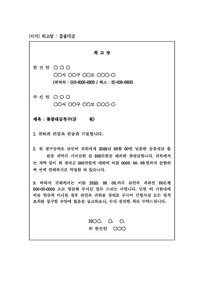 최고장 : 물품대금 요약정보 및 구매