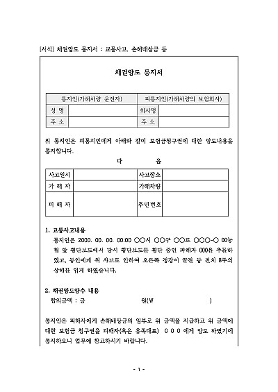 채권양도 통지서 : 교통사고, 손해배상금 등 요약정보 및 구매