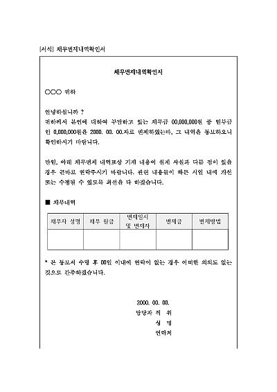 주요내용 : 채무자가 채무를 변제했음을 증명하기 위해 채권자로부터 받는 문서 양식임. 단 무단전재 방지목적으로 PDF 파일로 올리니, 구매하신 후 혹 원본 파일이 필요하신 분들은 톡이나 문자, 메일, 전화 등을 주시면 작성방법 등에 대한 간단한 무료상담과 함께 원본 파일을 보내드리도록 하겠습니다.