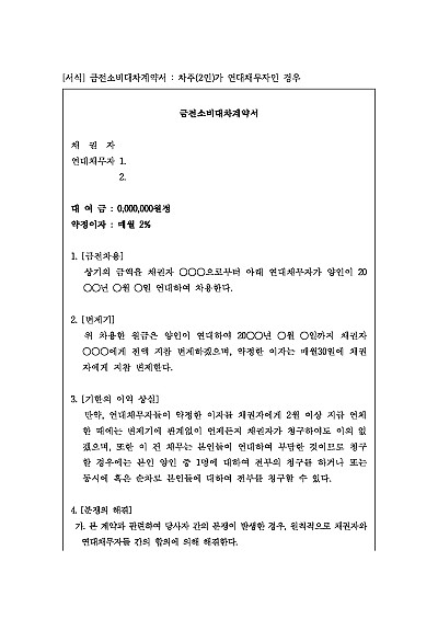 금전소비대차계약서 : 차주(2인)가 연대채무자인 경우 요약정보 및 구매