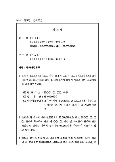 최고장 : 공사대금 요약정보 및 구매