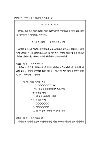 이사회의사록 : 법인의 목적변경 등 요약정보 및 구매