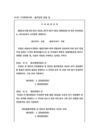 이사회의사록 : 출자방법 변경 등 요약정보 및 구매