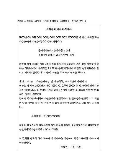 사원총회 의사록 : 자산총액변경, 재산목록, 수지계산서 등 요약정보 및 구매