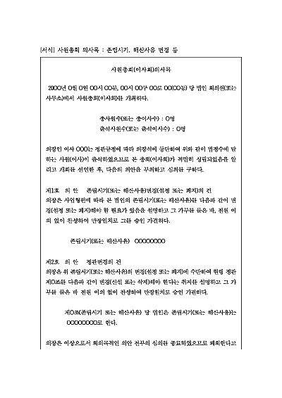 사원총회 의사록 : 존립시기, 해산사유 변경 등 요약정보 및 구매