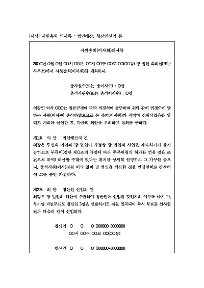 사원총회 의사록 : 법인해산, 청산인선임 등 요약정보 및 구매