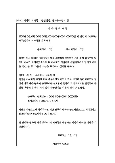 이사회 의사록 : 정관변경, 분사무소설치 등 요약정보 및 구매