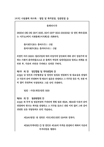 사원총회 의사록 : 명칭 및 목적변경, 정관변경 등 요약정보 및 구매