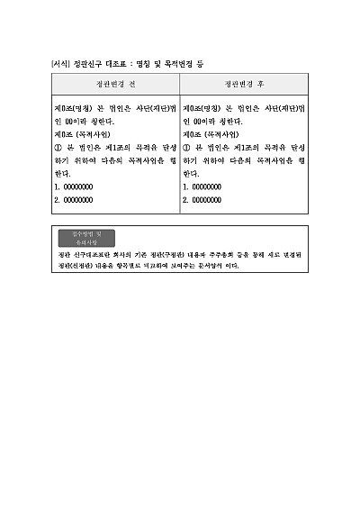 주요내용 : 법인의 기존 정관 내용과 사원총회를 통해 새로 변경될 정관 내용을 항목별로 비교하여 보여주는 문서 양식임. 단 무단전재 방지목적으로 PDF 파일로 올리니, 구매하신 후 혹 원본 파일이 필요하신 분들은 톡이나 문자, 메일, 전화 등을 주시면 작성방법 등에 대한 간단한 무료상담과 함께 원본 파일을 보내드리도록 하겠습니다.