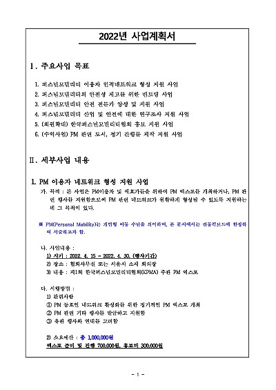 주요내용 : 사단법인의 설립목적 달성을 위해 사업내용, 추진 방법, 예산 등을 체계적으로 정리한 문서로, 설립 허가 및 운영의 필수 서류이며, 정관의 사업 내용과 일치하고 정부/지자체 소관 업무와 연관성을 갖도록 작성해야 하는데, 여기에는 목표, 시장 분석, 재무 계획(수지예산서), 조직 구성, 추진 시기, 장소, 예산 산출 근거 등이 포함되며, 사업의 실현 가능성과 연관성을 보여주는 것이 핵심임. 단 무단전재 방지목적으로 PDF 파일로 올리니, 구매하신 후 혹 원본 파일이 필요하신 분들은 톡이나 문자, 메일, 전화 등을 주시면 작성방법 등에 대한 간단한 무료상담과 함께 원본 파일을 보내드리도록 하겠습니다.
