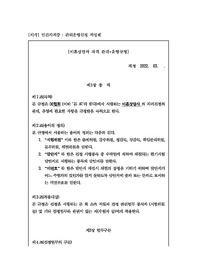 민간자격증 : 관리운영규정 작성례 요약정보 및 구매