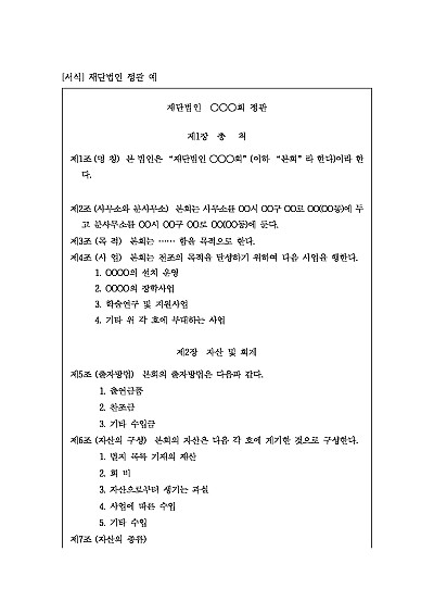 주요내용 : 재단법인의 조직, 운영, 목적 등을 규정한 근본 규칙을 문서로 옮긴 것으로, 법인 설립 시 필수적으로 작성하여 주무관청에 제출해야 하며, 법인의 설립 취지와 활동 방향을 담은 '법인의 헌법'과 같은 역할을 하며, 이는 법인의 목적 사업(공익사업 등)을 달성하기 위해 필요한 재산의 관리 및 운영, 임원 구성 및 선임, 이사회 운영, 해산 등의 사항을 명시힘. 단 무단전재 방지목적으로 PDF 파일로 올리니, 구매하신 후 혹 원본 파일이 필요하신 분들은 톡이나 문자, 메일, 전화 등을 주시면 작성방법 등에 대한 간단한 무료상담과 함께 원본 파일을 보내드리도록 하겠습니다.