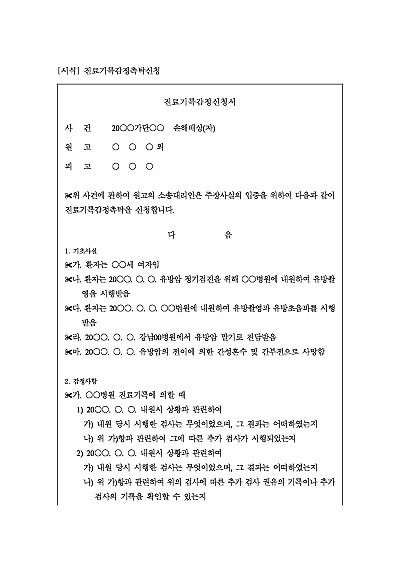 주요내용 : 망자의 유족들이 의료과실로 인한 망인의 사망원인을 입증하기 위한 목적으로 망인의 입원 및 사망시까지 병원의 진료기록에 대한 감정을 촉탁하기 위하여 사용되어지는 신청서 양식임. 단 무단전재 방지목적으로 PDF 파일로 올리니, 구매하신 후 혹 원본 파일이 필요하신 분들은 톡이나 문자, 메일, 전화 등을 주시면 작성방법 등에 대한 간단한 무료상담과 함께 원본 파일을 보내드리도록 하겠습니다.