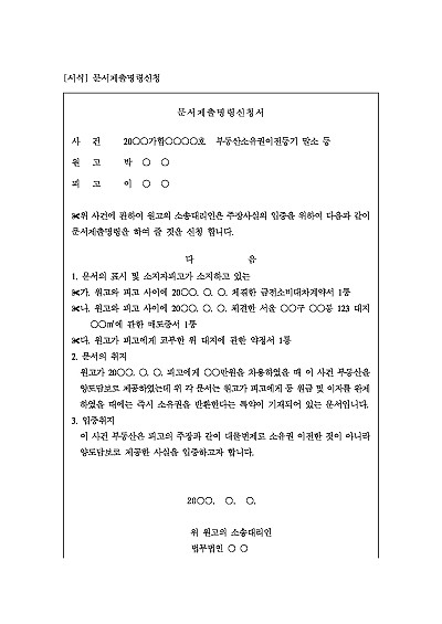 주요내용 : 소송에서 증거로 사용될 문서를 상대방이나 제3자가 소지하고 있어 직접 받을 수 없을 때 법원에 제출을 명령달라고 요청할 목적으로 사용되어지는 신청서 양식임. 단 무단전재 방지목적으로 PDF 파일로 올리니구매하신 후 혹 원본 파일이 필요하신 분들은 톡이나 문자메일전화 등을 주시면 작성방법 등에 대한 간단한 무료상담과 함께 원본 파일을 보내드리도록 하겠습니다.