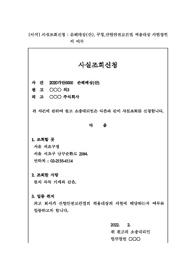 [로펌제작] 사실조회신청 : 손해배상(산), 구청,산업안전보건법 적용대상 사업장인지 여부 요약정보 및 구매