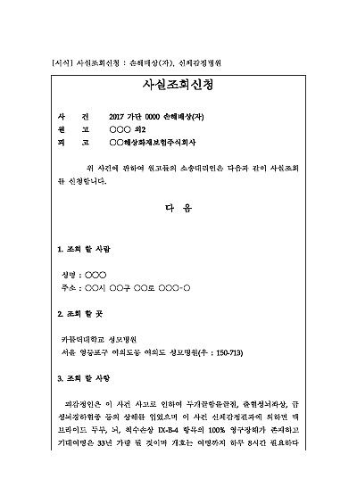 [로펌제작] 사실조회신청 : 손해배상(자), 신체감정병원 요약정보 및 구매