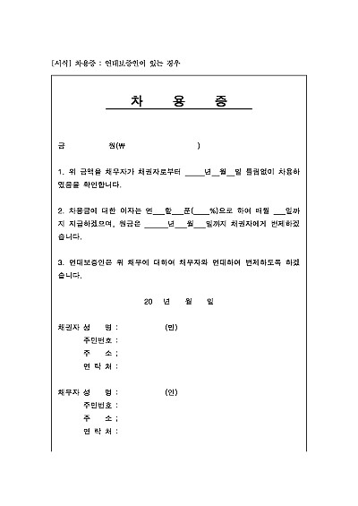 차용증 : 연대보증인이 있는 경우 요약정보 및 구매